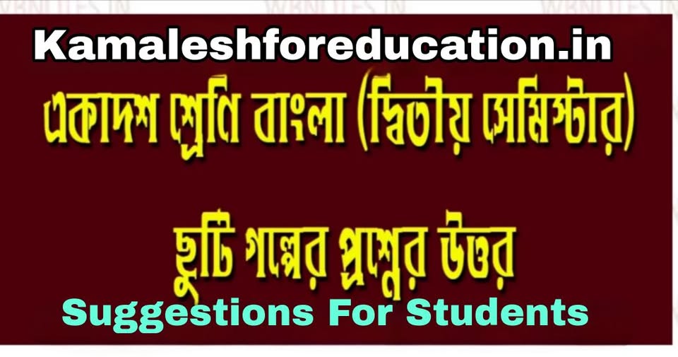 একাদশ শ্রেণির দ্বিতীয় সেমিস্টার পরীক্ষার প্রস্তুতির লক্ষ্যে Kamaleshforeducation.in ওয়েবসাইটের পক্ষ থেকে ছুটি- রবীন্দ্রনাথ ঠাকুর । একাদশ শ্রেণি দ্বিতীয় সেমিস্টার প্রশ্নের উত্তর প্রদান করা হলো। এই প্রশ্নের উত্তরগুলি সমাধান করলে একাদশ শ্রেণির শিক্ষার্থীরা তাদের বাংলা দ্বিতীয় সেমিস্টার পরীক্ষার চূড়ান্ত প্রস্তুতি গ্রহণ করতে পারবে।