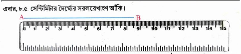 • প্রথমে স্কেলের সাহায্যে ৮.৫ সেমি দৈর্ঘ্যের একটি সরলরেখাংশ আঁকো।