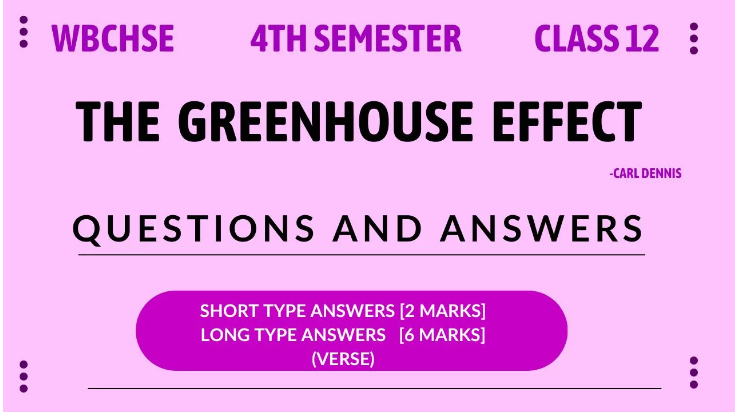 Get complete The Greenhouse Effect Questions Answers 4th Semester Class 12 for WBCHSE students under the New Semester System. Detailed solutions with Bengali meanings help in quick memorisation and exam preparation. Ideal study notes for scoring high in the 2025 Class 12 English exam.