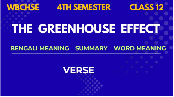 Get The Greenhouse Effect Summary and Bengali Meaning WBCHSE for Class 12, 4th Semester students. Understand Carl Dennis’s poem on climate change, global warming, and human responsibility. Prepare effectively with a simple English summary and Bengali explanation for WBCHSE exams.