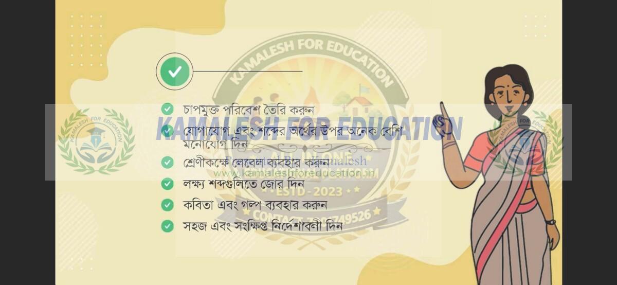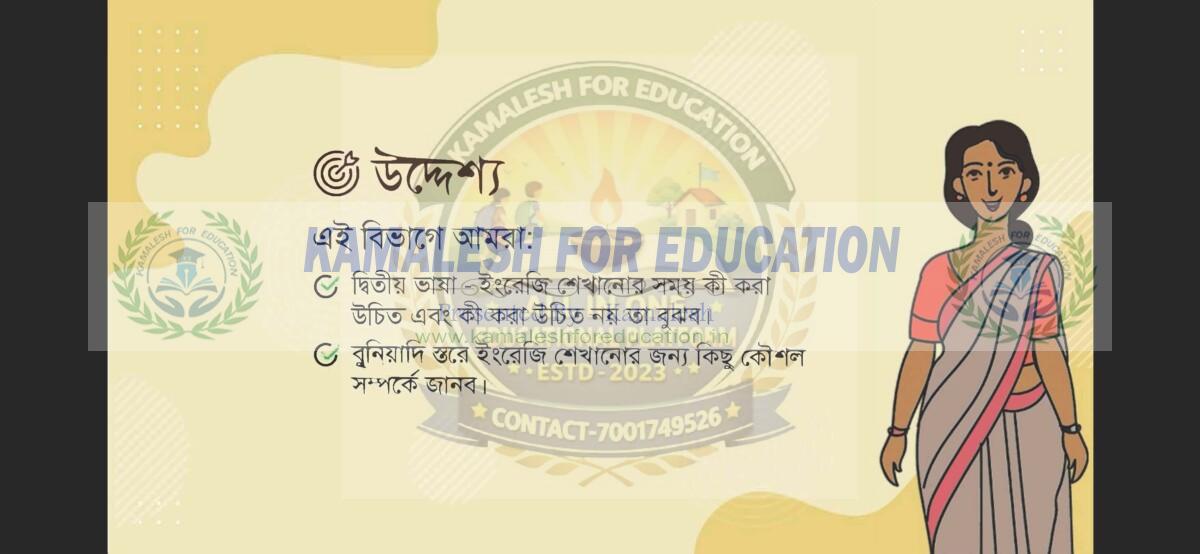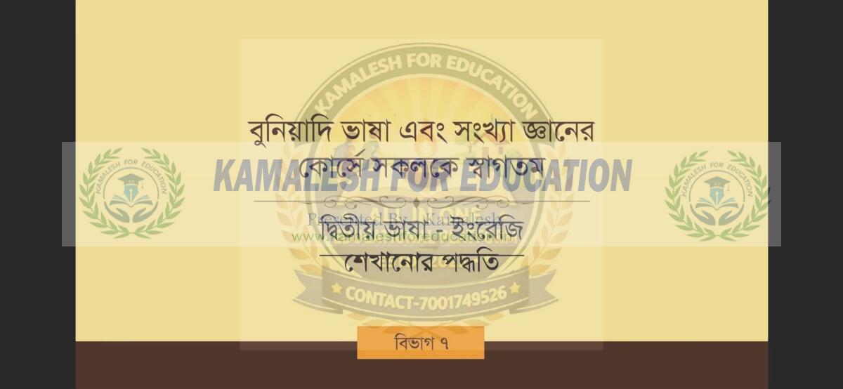 FOUNDATION LITERACY & NUMERACY বুনিয়াদী ভাষা ও সংখ্যা জ্ঞান ডিজিটাল কোর্স দ্বিতীয় ভাষা ইংরেজী শেখানোর পদ্ধতি বিভাগ-৭ ©kamaleshforeducation.in(2023) Share this: Click to share on Facebook (Opens in new window) Facebook Click to share on X (Opens in new window) X Like this:Like Loading... Related